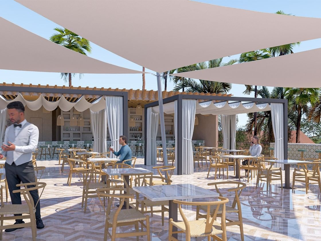 L’Oasis is a poolside restaurant with a capacity of 100 guests, offering an idyllic setting that combines relaxation and gastronomy. Nestled in a lush, green environment, the establishment charms guests with its refreshing atmosphere, where the shimmering blue pool forms the centerpiece of the venue. The menu features a diverse selection of dishes blending Mediterranean flavors with international specialties, all prepared using fresh, seasonal ingredients. Whether for a sunny lunch, a dinner by the water, or a special event, L’Oasis promises a unique culinary experience in a relaxing and friendly atmosphere.