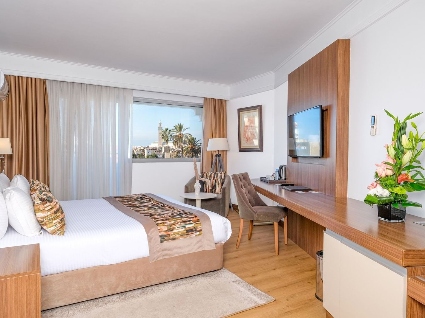 The Deluxe Room with a Mosque view, measuring 24m², offers a perfect blend of comfort and sophistication. Adorned with modern furnishings and elegant décor, this room provides a welcoming ambiance for guests.