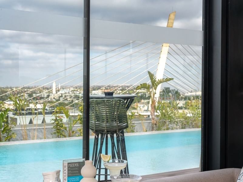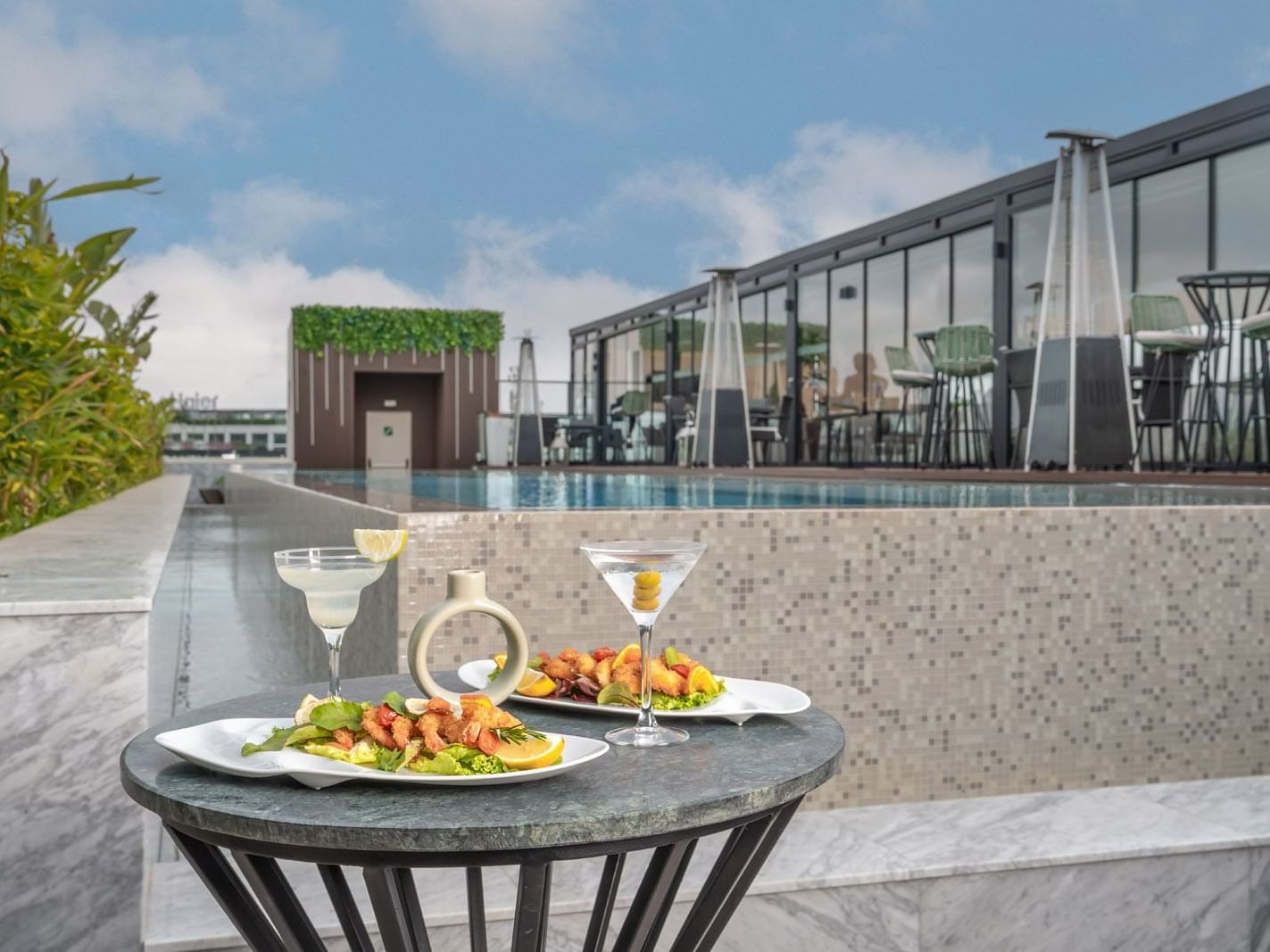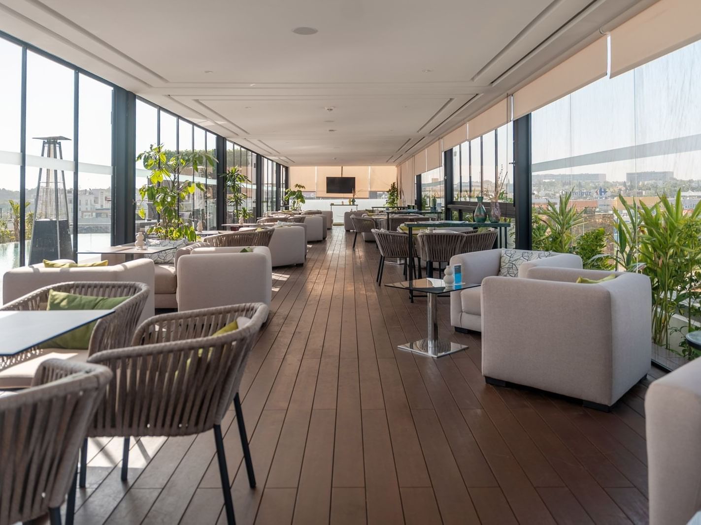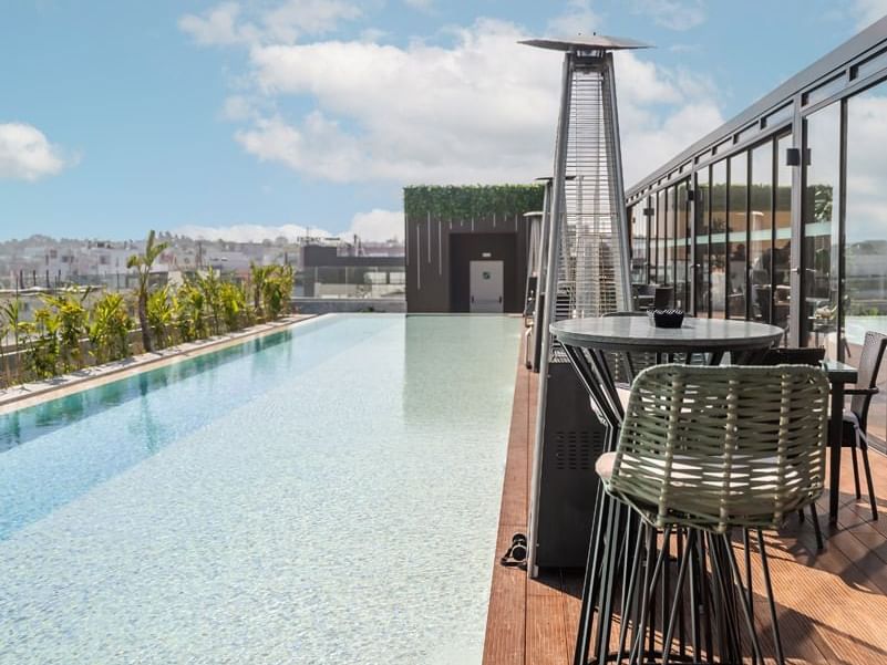 A surprising oasis with breathtaking city views to enjoy exotic tapas and refreshing cocktails in a relaxing setting .