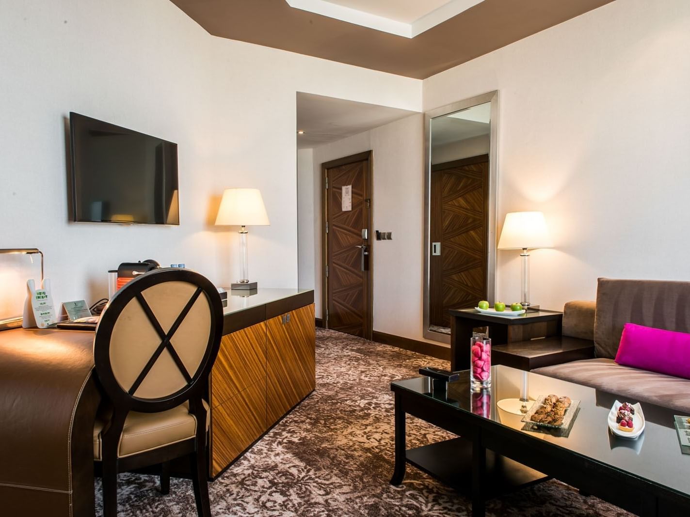 Up to 59m² and could be connected to Premium Room, with a private sitting corner and free wifi in room