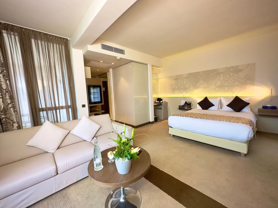 L’hôtel Kenzi Sidi Maarouf met à votre disposition 130 chambres alliant confort et décoration moderne, dont 2 chambres pour personnes à mobilité réduite, 8 suites junior, 2 suites sénior & 7 duplex, dotées de téléphone direct, TV satellite, climatisation, coffre-fort individuel, mini bar et une couverture WIFI dans les chambres et les lieux communs.