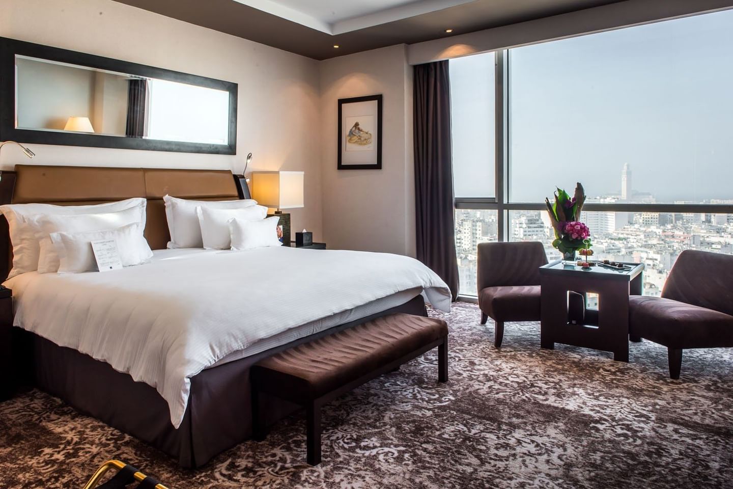Notre établissement offre 237 chambres et suites luxueuses, toutes dotées d’une vue surplombant la ville et équipées de technologies avant-gardiste et de WIFI gratuit. L’hôtel met aussi à votre disposition, un spa avec piscine couverte et salle de fitness, 3 restaurants et 2 bars ainsi que plusieurs salles de conférence. Chaque prestation est orchestrée par une équipe professionnelle et attentionnée qui met à votre disposition un service personnalisé qui vous permettra d’apprécier votre séjour dès les premiers instants.
